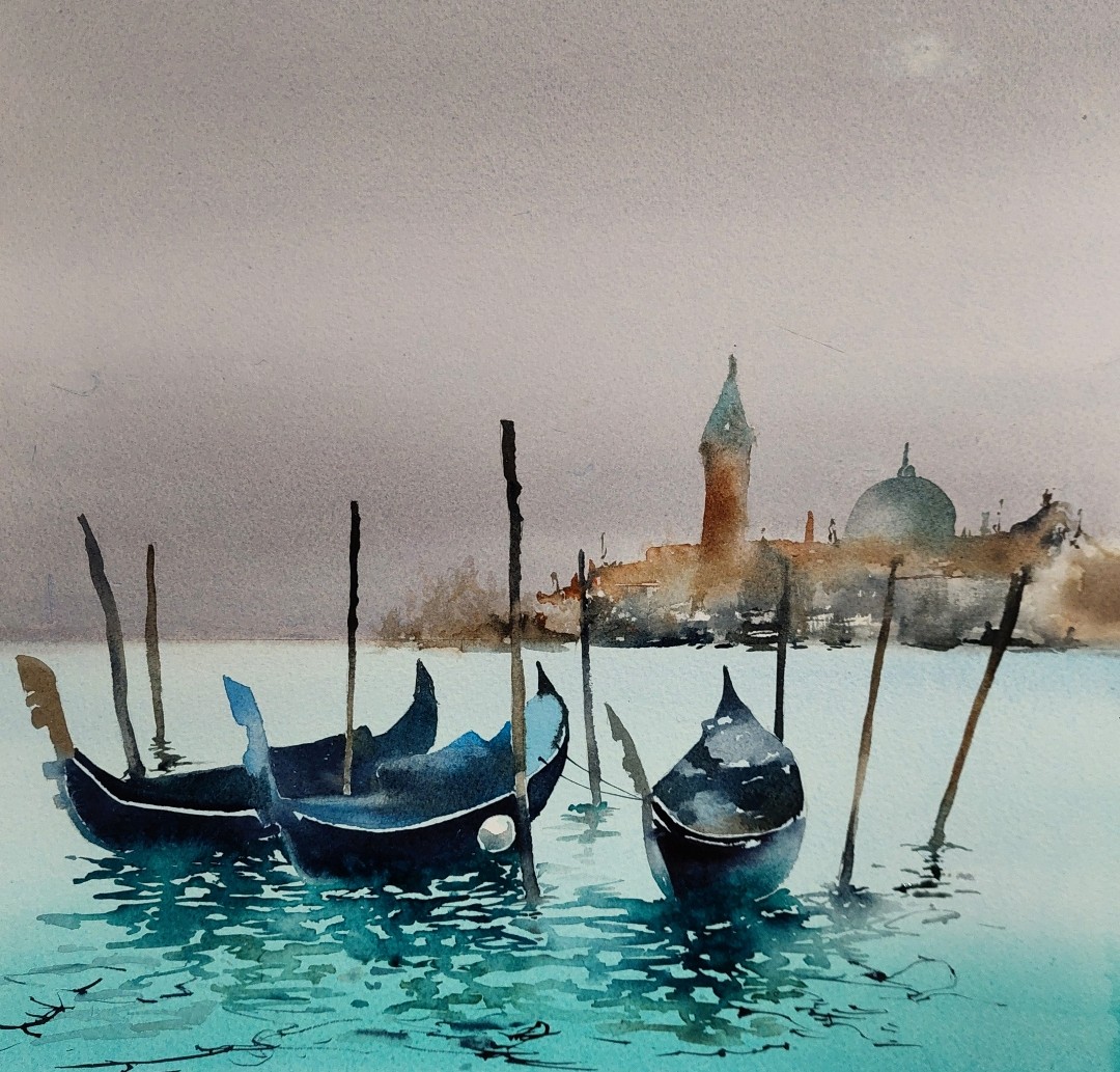Venice is one of the most beautiful cities in the world, simply made for fine art. We will try to convey several motifs complicated for a watercolor artist at once - soft foggy light, gondolas, and complex reflections in transparent emerald water. This is truly one of the most remarkable places on the planet - and a really serious challenge for the artist. Let's try to take this height together, step by step.